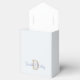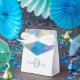 Send your wedding guests home with sweet memories of your special day with this favour box in pale ocean blue featuring sea glass on the front flap. Personalised with a monogram initial of the couple's new last name along with the first names of the happy couple. Add the wedding date on the back. All writing can be changed or removed.
