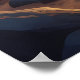 This digital artwork captures a breathtaking and surreal scene, where a massive, curling wave dominates the foreground, its translucent blue water forming a perfect tunnel. Through the wave, the setting sun casts a warm golden glow, while a full moon hangs in the sky, creating a stunning contrast of light. The beach is lined with palm trees, their silhouettes adding to the tropical atmosphere. The sky is painted in soft hues of pink, orange, and purple, reflecting on the water and sand. The interplay of natural elements—ocean, sky, and land—evokes a sense of wonder, tranquillity, and the beauty of nature. This image captures the harmony of day and night, land and sea, in a dreamlike and magical setting.