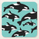 Ocean Orca Killer Whales on Blue Square Paper Coaster