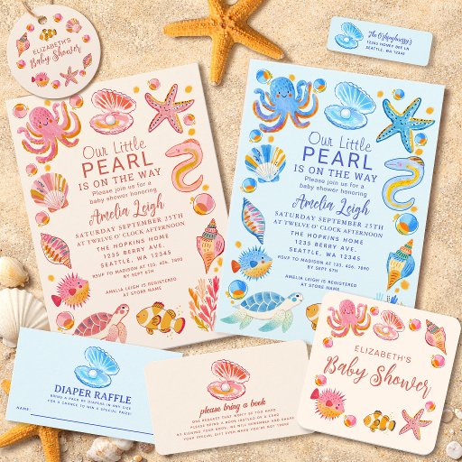 Ocean Pearl Sea Creatures Pink Girl Baby Shower Invitation