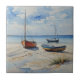 "Ocean Retreat". A Colourful Serene Boat Seascape Tile