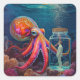 "Ocean’s Silent Captive" – Octopus Portrait Square Sticker
