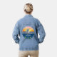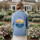 Ocean sunrise and swimming sea turtles and dolphin Denim Jacket. Text can be personalised.