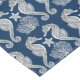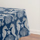Original fine art design of elegant ocean seahorse, starfish and coral by designer Carolyn McFann of Two Purring Cats Studio printed on a quality tablecloth for marine life fans.