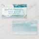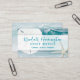 Business cards with ocean water and seashell images. Customise sea blue text in three lines over a white panel. A white sand dollar and sea star / starfish decorate the cards. First line is in script and can be for a personal name or business name. The second line is for service offered or profession. The third line is for contact / location / online website. The design may not fit all business card sizes.