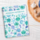 A hand painted coastal design of watercolor seashells and starfishes in blue and green hues arranged into a pattern. Customise the text to your name, subject name or anything you like!