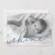 Share holiday greetings with these chic Hanukkah photo cards featuring your favourite full bleed horizontal or landscape orientated photo. "Shine" appears as a slate blue text overlay in elegant hand lettered script typography. Personalise with your names and the year along the bottom. Cards reverse to matching smoky blue with a snowy overlay.