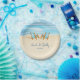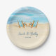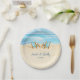 Two beach chairs are placed at the shore edge to represent the happy couple on this serene ocean-themed plate. All wording can be changed to suit ANY celebration and the plate can be customised for a wedding, shower, engagement party, anniversary celebration, or birthday party. Perfect for your beach-themed, or destination wedding or other event. Available with matching products.