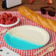 Ocean shore, teal water, sandy beach, paper plates perfect for a beach themed wedding or baby shower.