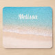 A clean, coastal design featuring vibrant turquoise water meeting soft sand in a smooth, natural shoreline. The balanced composition and deeper blue tones create a clear, readable space for custom names, dates, or meaningful text without distractions.