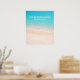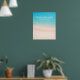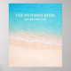 A clean, coastal design featuring vibrant turquoise water meeting soft sand in a smooth, natural shoreline. The balanced composition and deeper blue tones create a clear, readable space for custom names, dates, or meaningful text without distractions.