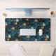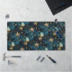 A desk mat with an elegant blue pattern with starfish, representing the ocean.