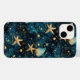 An iPhone 14 Case with an elegant blue pattern with starfish, representing the ocean.