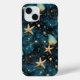 An iPhone 15 Case with an elegant blue pattern with starfish, representing the ocean.