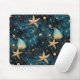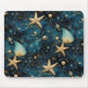 A mouse pad with an elegant blue pattern with starfish, representing the ocean.
