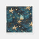 A set of paper napkins with an elegant blue pattern with starfish, representing the ocean.