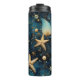 A thermal tumbler with an elegant blue pattern with starfish, representing the ocean.