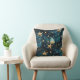 A throw pillow with an elegant blue pattern with starfish, representing the ocean.