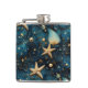 A hip flask with an elegant blue pattern with starfish, representing the ocean.