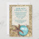 Tropical Christmas wedding invitations. Ocean water, wedding at sea, ceremony invitations with a tropical Christmas theme. Shimmering water is the background for simple text for any type of December wedding ceremony, or other event. A brown sea star / starfish with aqua blue ball ornament decorates the bottom of this 5x7 inch, ticket shaped paper. Matching teal green printed text with couple's names at the top. Change the edges and upgrade the paper as you choose. Contact me for matching items and I'll make whatever you need.