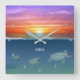 Ocean sunrise & swimming sea turtles square wall clock