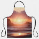 This apron showcases a breathtaking sunset over the ocean, with vivid hues of orange, pink, and purple glowing across the sky. The sun, partially hidden by clouds, casts warm reflections on the water, while distant rocky formations add depth and contrast to the serene seascape. Black neck and waist ties complement the colorful print, making it both stylish and practical. Perfect for cooking, baking, or crafting, this apron blends functionality with artistry, turning everyday tasks into moments of inspiration. A thoughtful gift for nature lovers, travelers, or anyone who enjoys the calming beauty of sunsets.