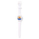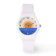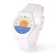 Beautiful elegant wrist watch with minimalistic scene of ocean and setting sun.