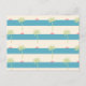 Retro tropical pattern with horizontal cream and muted teal stripes. Features minimalist green palm trees and small salmon-pink suns. A calm, vintage-inspired summer aesthetic with a soft pastel color palette.