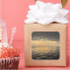 A stunning photograph of the sun setting over calm ocean water, reflecting warm colors for a dreamy coastal scene. Perfect for beach houses, travel lovers, modern interiors, or gifting.