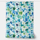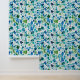 Beautiful wallpaper features a watercolor terrazzo pattern in the blues and greens of the ocean.