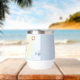 Two lines of customizable text highlight this ocean-themed thermal wine tumbler featuring a single crab, a life preserver and a note in a floating bottle.
