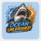Ocean Unleashed Shark – Bold Blue & Orange Splash Square Sticker