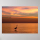 A beautiful sunset over the shores of the Gulf of Mexico with shades of red, gold, and orange make a splendid and colourful image. A great blue heron bird stands in the water in the foreground while two sea gulls are seen in the sky. The digital painting is based on photographs taken at Fort Myers Beach, Florida, by Roger Knowles.