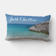 Lumbar pillow with ocean view beach. personalised, now reads: Peace & Quiet on one side, and Just Chillin on the other side. Makes a great beach house gift.