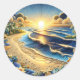 Ocean View Tropical Paper Quilling Effect Classic Round Sticker