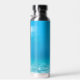 The bottle looks even better in real life. The ice cubes I put in lasts all day! I have my bottle with me all the time. It's summer and having something cold to drink feels amazing. With this bottle I always have something super cold. I have only tried the hot drink once and it lasted a long time as well. The color blue is a navy blue and the white printed on it is vibrant. It printed perfectly. I love my personalized smile water bottle.