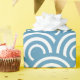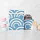 A minimalist and modern design featuring repeating semi-circular wave motifs in white against a blue backdrop. The seamless pattern evokes a sense of tranquillity and harmony, inspired by the ebb and flow of the ocean.