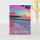 Ocean Waves and Sunset, Pink Sand, Happy Birthday Card