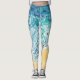 traditional watercolor seascape artwork of blue ocean waves washing ashore a sandy beach on custom leggings