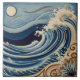 Ocean Waves Blue and White Sea by Moonlight Tile