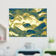 Ocean Waves Gold Foil With a Dark Blue Background Foil Prints