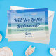 This beautiful beach wedding Will You Be My Bridesmaid card features a gorgeous photo of the ocean waves for a destination wedding. Pretty beach photography paired with elegant blue typography creates a chic, modern bridal party proposal card for a tropical island event.