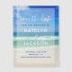 This beautiful beach save the date magnetic card features a gorgeous photo of the ocean waves for a destination wedding. Pretty beach photography paired with elegant white and blue typography creates chic, modern magnets for a tropical island event.