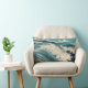 Ocean Waves Pillow features an antique Japanese painting made into a graphic. Colours are off white and blues. created by Graphic Divine
