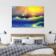 Ocean Waves, Sailboat and Sunset Reflection Canvas Print