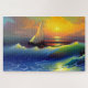 Ocean Waves, Sailboat and Sunset Reflection Jigsaw Puzzle