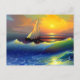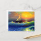 Ocean Waves, Sailboat and Sunset Reflection Postcard