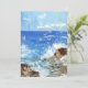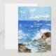 A tranquil painted beach landscape of waves crashing.