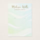 Handwritten script font on wave pattern in subtle tones of aqua blue and green Elegant earring display holder with two printed hole "markers" - these are not real holes.