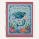 Dive into a world of wonder with the "Oceanic Magic" journal. This cover features a stunning faux-embroidery illustration of a graceful mermaid with flowing sea-green hair and a shimmering emerald tail. She swims through a vibrant underwater garden filled with pink and orange coral, delicate seashells, and playful tropical fish. The design is framed by a unique "bubble and wave" embroidered border on a soft blue linen-textured background, giving the entire scene a beautiful, handcrafted depth.